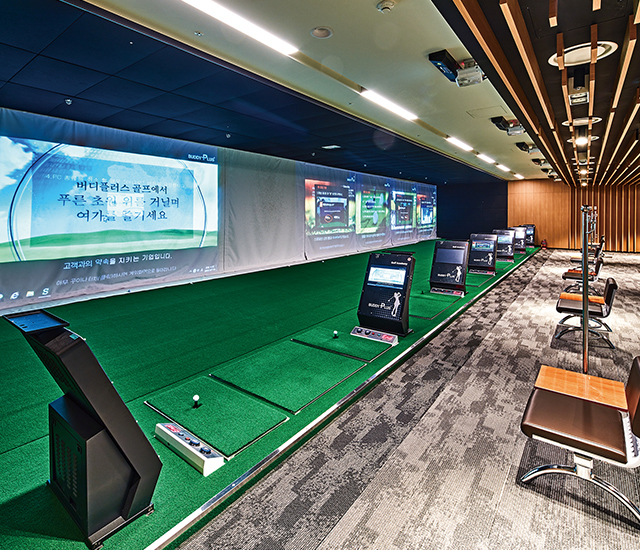 실내 골프연습장. 스크린연습장과 야외퍼팅장도 있다.