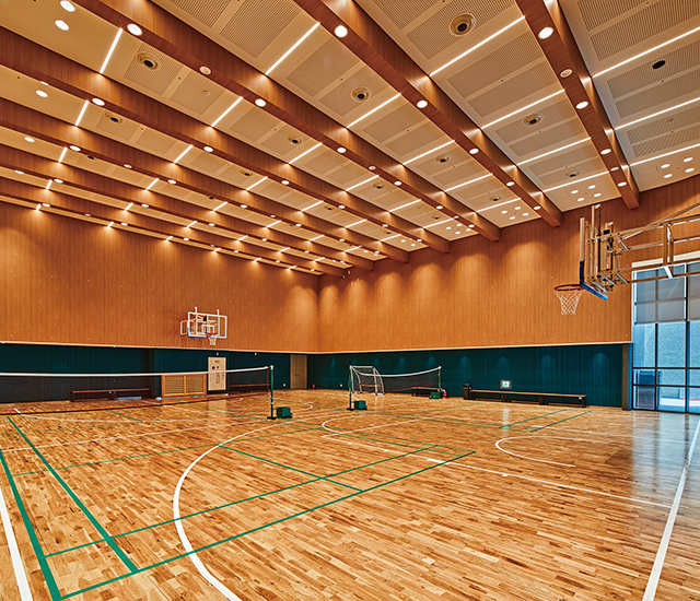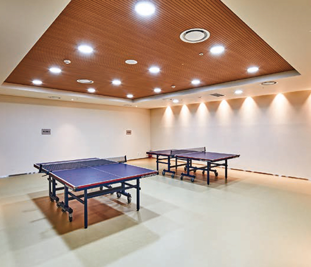 수영장과 더불어 204평의 대형 피트니스는 광교 최대 규모다. 골프연습장 12타석과 스크린골프 2타석에 야외 퍼팅그린장까지 마련했다. 실내체육관은 144평 규모로 농구코트, 배드민턴코트 등을 갖췄다. 여기에, 스크린야구장 2타석과 포켓볼 당구장도 여느 단지에서는 찾아보기 힘든 시설이다.