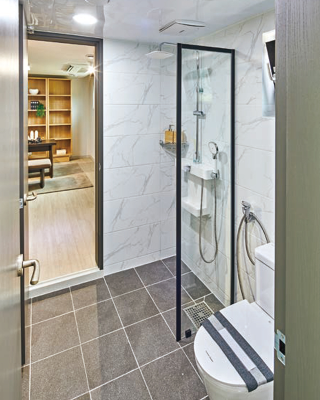 한결 여유롭게 사용할 수 있는 욕실이다. -