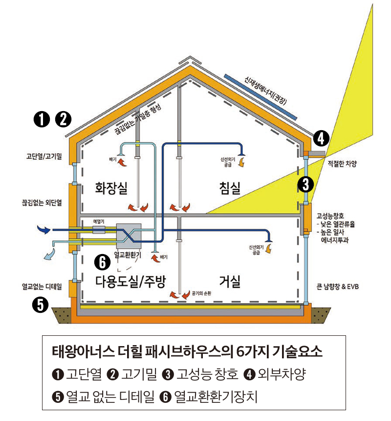 주택은 패시브하우스 A2등급을 만족하는 고성능 단열, 고기밀 시공으로 완성된다.고성능 친환경자재만을 사용했으며 독일식 3중유리를 장착한 이건시스템창호를 설치했다.