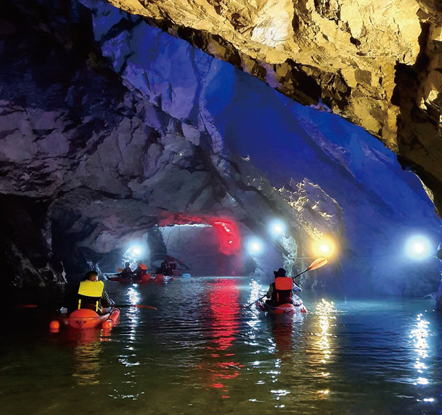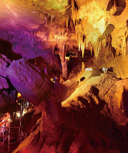 안전 헬멧을 쓰고 가파른 계단을 내려서면 신비한 지하 세계 탐험이 시작된다. 동굴은 석회동굴의 특성을 고스란히 보여준다. 바닥에 솟은 석순과 천장에 매달린 대형 종유석, 석순과 종유석이 연결된 석주 등이 끊임없이 이어지며 흥미진진한 동굴 탐방을 이끈다. 오백나한상, 사천왕상, 피아노상 등 다양한 2차 생성물도 차례차례 모습을 드러낸다.