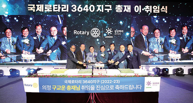 지난 7월 1일 서울 양재동 더 케이 호텔에서는 국제로타리 서울 3640지구 총재 취임식이 열렸다. 이날 총재에 취임한 구교운 회장을 축하하기 위해 모인 참석자만 1,000여명으로 성황을 이루었다. 오세훈 서울시장, LPGA 이정은, 최나연 프로 등 외부인사는 영상메시지로 축하인사를 전했다.