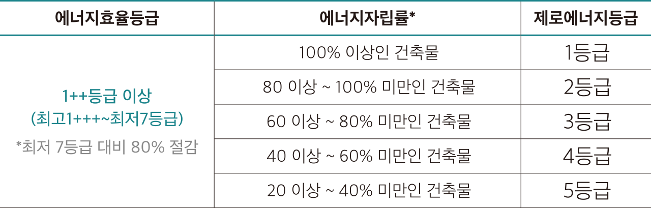 에너지효율등급 1++ 이상을 충족하고 건물에너지 모니터링 시스템(BEMS 등)을 설치한 녹색건축물 중 에너지자립률에 따라 1~5 등급으로 구분하여 인증하는 제도