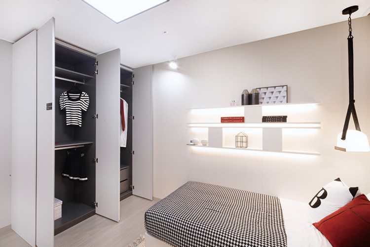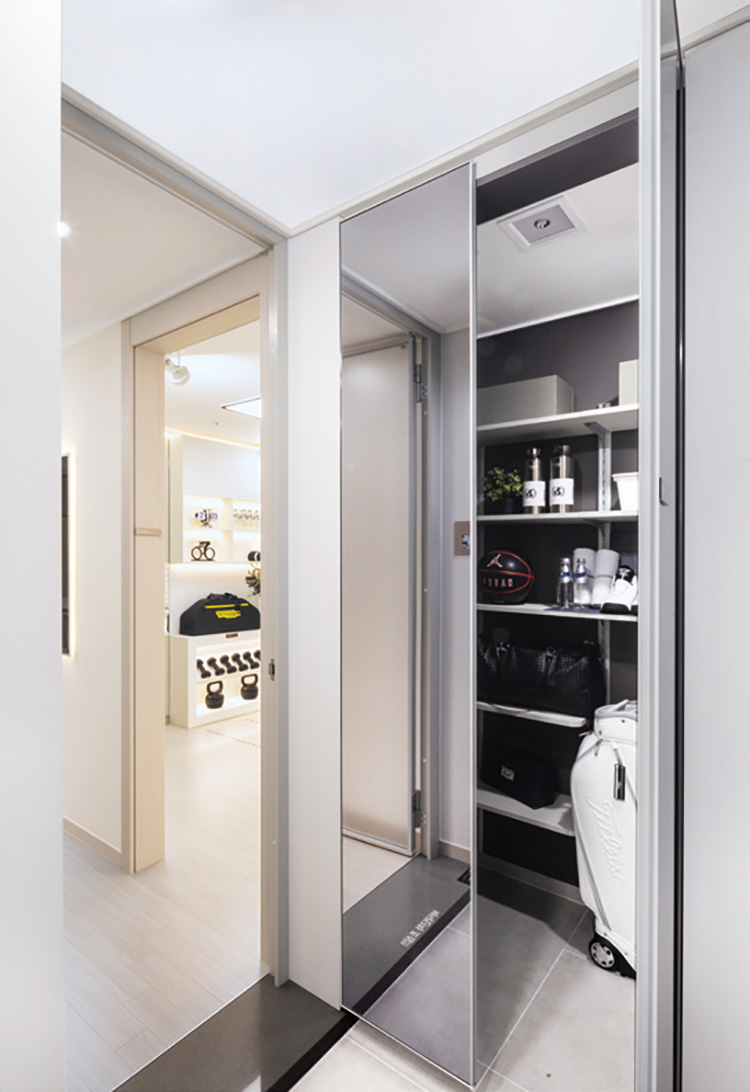 캠핑 용품, 스포츠 용품 등 큰 물건의 보관이 가능하다. 시스템가구가 기본으로 설치된다.
