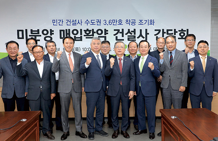 협회(회장 정원주)는 9월 26일 LH 주재로 열린 ‘수도권 공공택지 미분양주택 매입확약 간담회’에 참석했다. 이번 간담회는 8월 8일 정부가 발표한 국민 주거안정을 위한 주택공급 확대방안에 따라, LH가 추진 중인 수도권 공공택지 미분양주택 매입확약 사업의 경과를 공유하고 업계 건의사항을 듣고 소통하고자 마련된 자리다.
