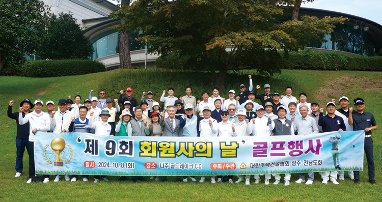 제9회 회원사의 날 골프행사 개최광주전남도회(회장 정기섭)는 10월 8일 전남 나주 골드레이크 컨트리클럽에서 도회 회원사 및 유관기관 85명을 초청해 제9회 회원사의 날 골프행사를 개최했다. 행사에는 친선골프 뿐만아니라 만찬, 축하공연 등 참석한 회원사들의 친목도모와 화합의 장을 여는 시간도 진행됐다.