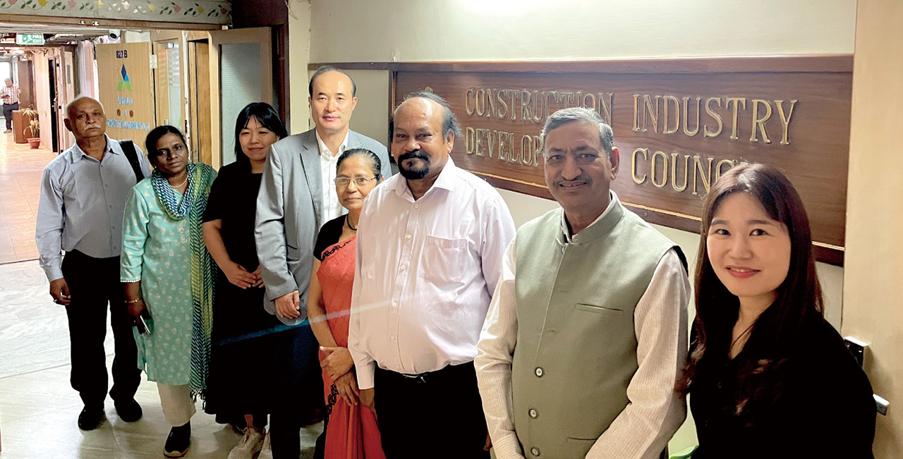 인도 CIDC 방문: 인도정부와 건설업계가 공동 설립한 CIDC를 방문하여 관계자들과 회의를 가졌다(사진은 미팅 후 기념촬영 장면)