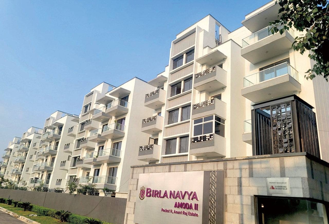 아디티야 비를라그룹의 Birla estates에서 분양한 Birla navya 타운하우스 단지 전경:4층 규모로 큰 테라스와 방마다 달린 화장실이 인상적이다.