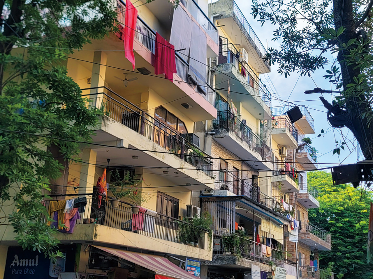 뉴델리 시내에 위치한 서민아파트 모습:수도인 뉴델리 지역에는 재건축이나 재개발이 필요해 보이는 노후된 서민아파트들이 많다.