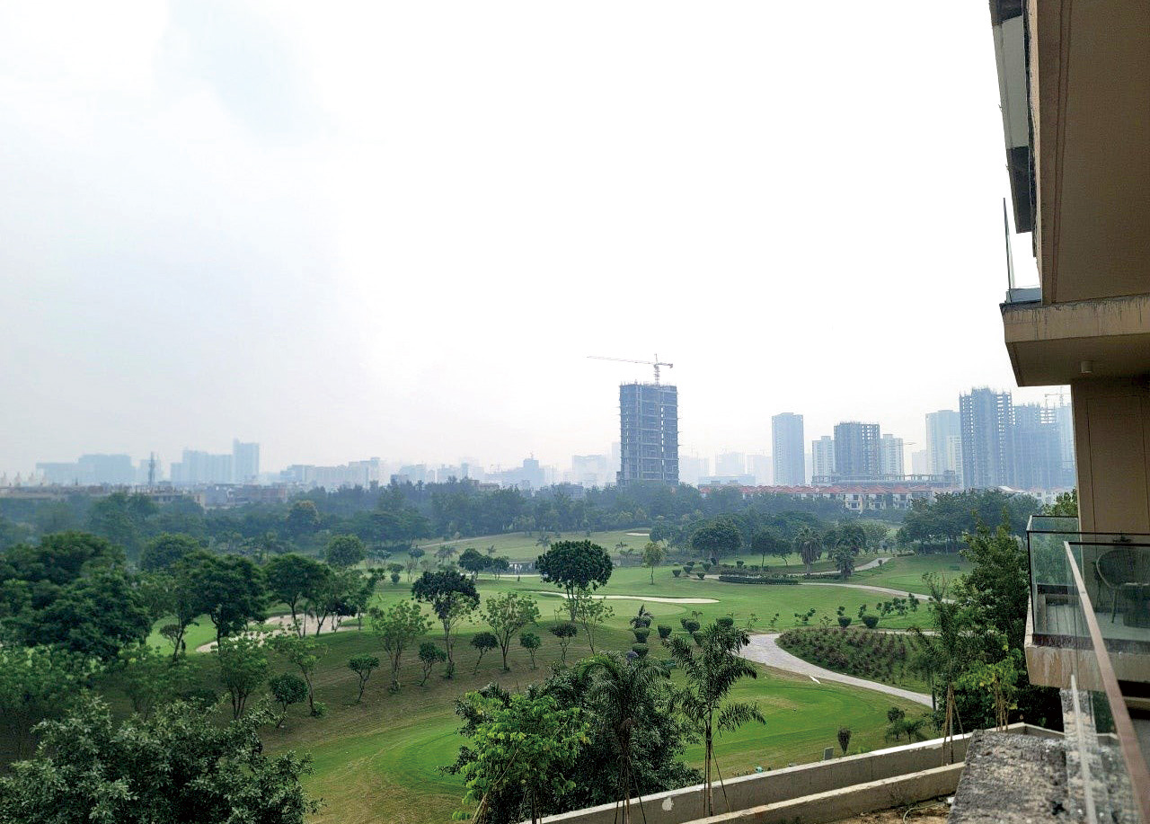 칼파타루 비스타 아파트단지에서 바라본 골프장 모습. 노이다지역에는 골프장을 가운데 두고 조성된 아파트단지가 많다.