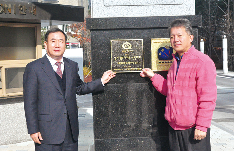 살기좋은 아파트 선발대회에서 수상한 삼구트리니엔 단지 현판식