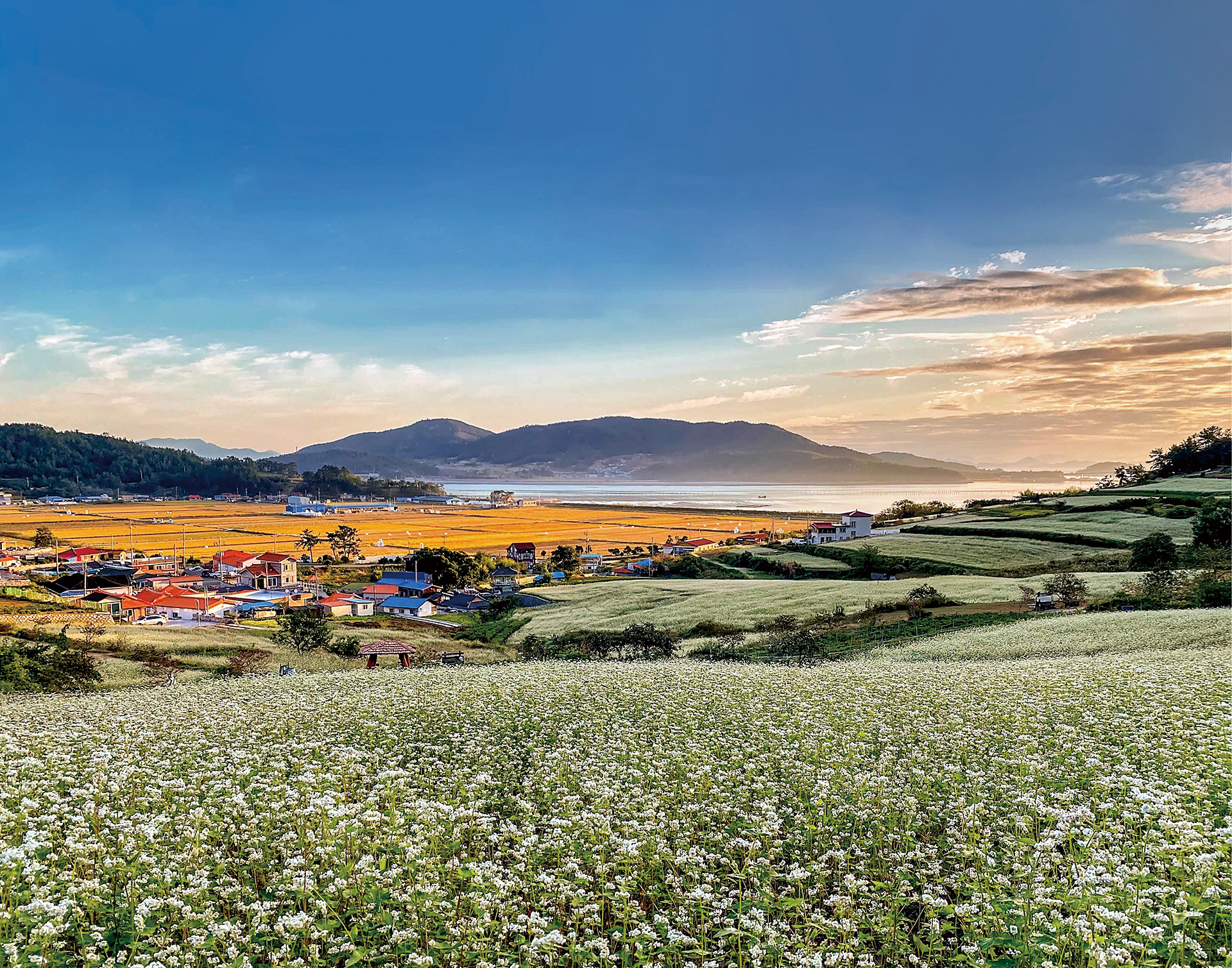 장흥 득량만소설길 코스에서 만나는 선학동 말을의 가을 들녘 풍경.