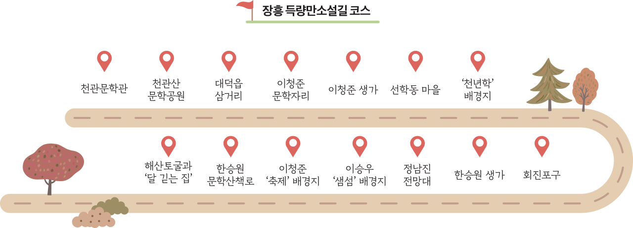 탐진강과 천관산, 억불산 등 유려한 자연 풍토를 가진 말 그대로 ‘자연과 문학’이 어우러져 있는 장흥은 어디를 가나 문학명소가 있다. 54명의 문인 글을 바위에 새긴 후 비석으로 층층이 세운 천관산문학공원도 조성돼 있다. 이 문학공원엔 작가들 육필원고와 메시지를 담은 15m 돌탑이 명물로 꼽힌다. 이곳에는 한승원 작가와 한강 작가 등 장흥 출신 작가들의 각종 전시물과 작품, 일대기도 전시돼 있다. 장흥군은 한강 작가의 노벨문학상 수상을 계기로 ‘한승원· 한강 부녀작가의 기념관’ 건립 추진에도 나서기로 했다.