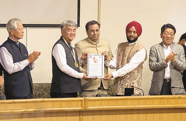 인도 ‘마하트마 간디 국제상’ 수상(주)중흥개발 정원주 대표이사(중앙회장, 사진 왼쪽 두번째)가 11월 20일 인도 뉴델리 마하트마 간디 추모원에서 한국과 인도 양국의 경제협력과 교류 증진에 힘쓴 공로를 인정받아 한국인 최초로 ‘마하트마 간디 국제상’을 수상했다. 정 회장은 인도 민간 최대단체인 NRI복지재단으로부터 이 상을 받았으며, 역대 수상자 가운데는 노벨상을 받은 테레사 수녀도 있다.
