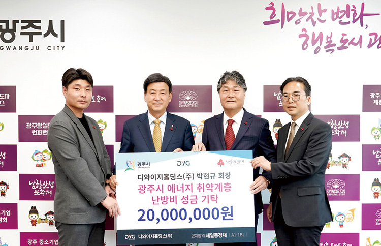 경기 광주시에 성금 2,000만원 기탁디와이지홀딩스(주)(회장 박현규, 서울시회 소속, 사진 오른쪽 두번째)은 11월 4일 경기도 광주시청을 방문해 성금 2,000만원을 기탁했다. 이번 성금은 에너지 취약계층이 따뜻한 겨울을 보내는데 사용될 예정이다. 이날 기탁식에는 박현규 회장을 비롯해 방세환 광주시장, 김효진 경기사회복지공동모금회 사무처장 등이 참석했다.