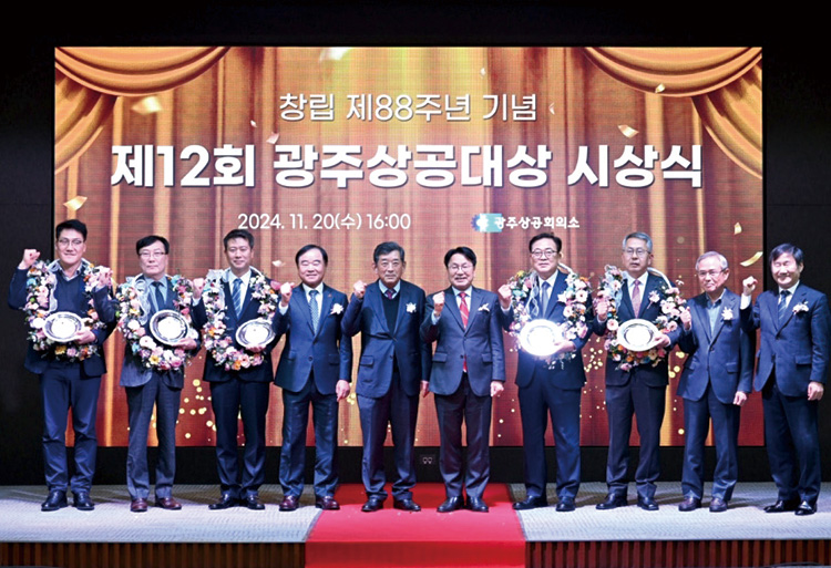 광주상공대상 경영우수부문 대상 수상(주)리젠시빌주택 이영웅 회장(광주전남도회 이사, 사진 오른쪽 네번째)이 11월 20일 광주상공회의소에서 열린 ‘창립 88주년 기념 제12회 광주상공대상 시상식’에서 광주상공대상 경영우수 부문 대상을 수상했다. 이 회장은 2022년 매출액을 2019년에 비해 2배, 영업이익은 2.7배 각각 증가시키는 등의 탁월한 경영성과를 달성해 상을 수상했다.
