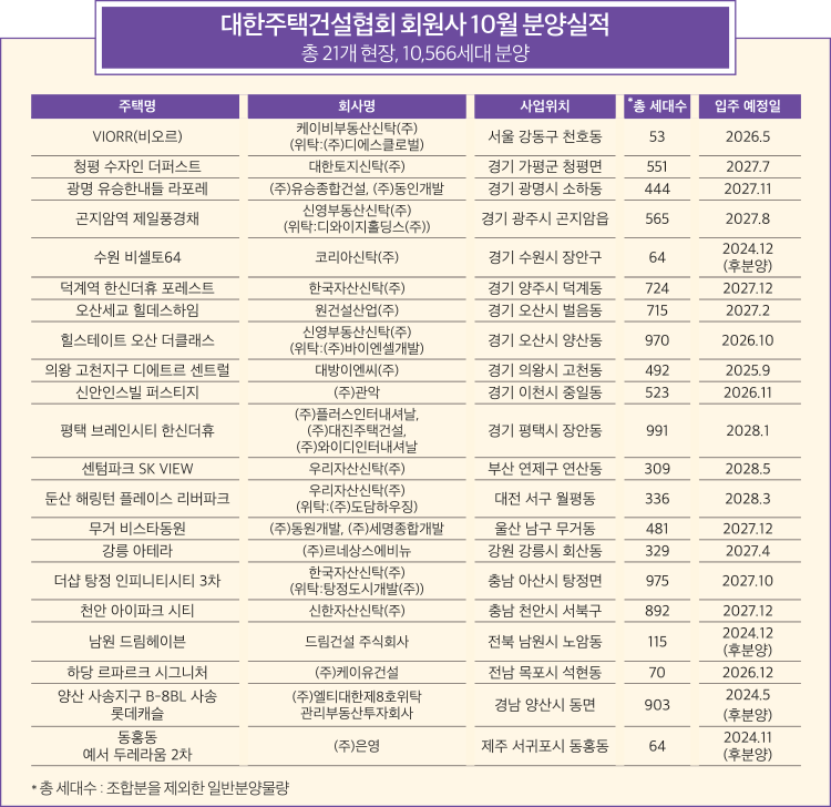 대한주택건설협회 회원사 10월 분양실적