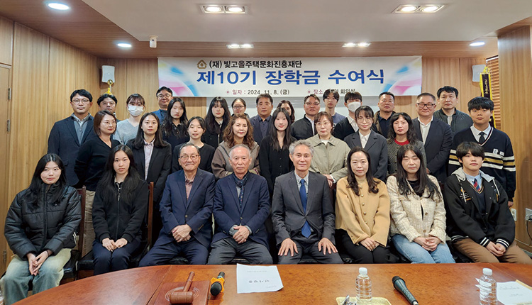 제7회 도시주택포럼 개최광주전남도회(회장 정기섭, 사진 앞줄 오른쪽 네번째)와 (재)빛고을주택문화진흥재단(이사장 한동주)은 11월 8일 도회 회의실에서 회원사 임직원자녀 30여 명에 대한 제10기 장학증서 전달식을 개최했다. 총 3,000만원의 정학금이 전달됐으며, 정 회장은 “장학금을 받은 학생들이 국가와 사회에 기여하는 사회구성원이 되길 바란다”고 말했다.