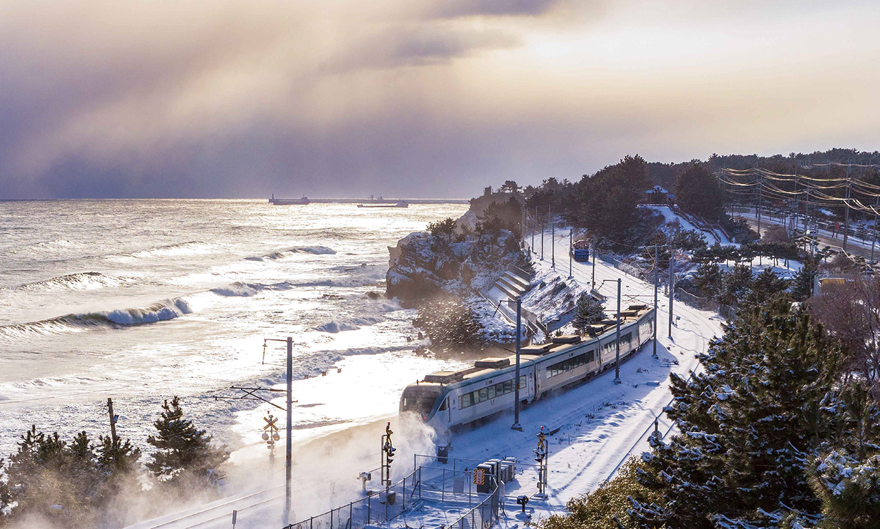 동해안을 대표하는 겨울 여행지. 드라마 모래시계가 나온지 벌써 30년 세월이 흘렀지만 정동진의 명성은 여전하다. 세계에서 바다와 제일 가까이 있는 간이역이고 동해의 푸른 창파에서 우람하게 솟아오르는 해를 맞는 관광객들이 많다. 지난 1997년 정동진 해돋이 관광열차의 운행으로 급부상하여 관광객들이 사계절 내내 붐빈다. 폭설이 내린 직후 열차가 들어오는 풍경을 찍기 위해 수 많은 사진작가들이 몰리는 곳이기도 하다.