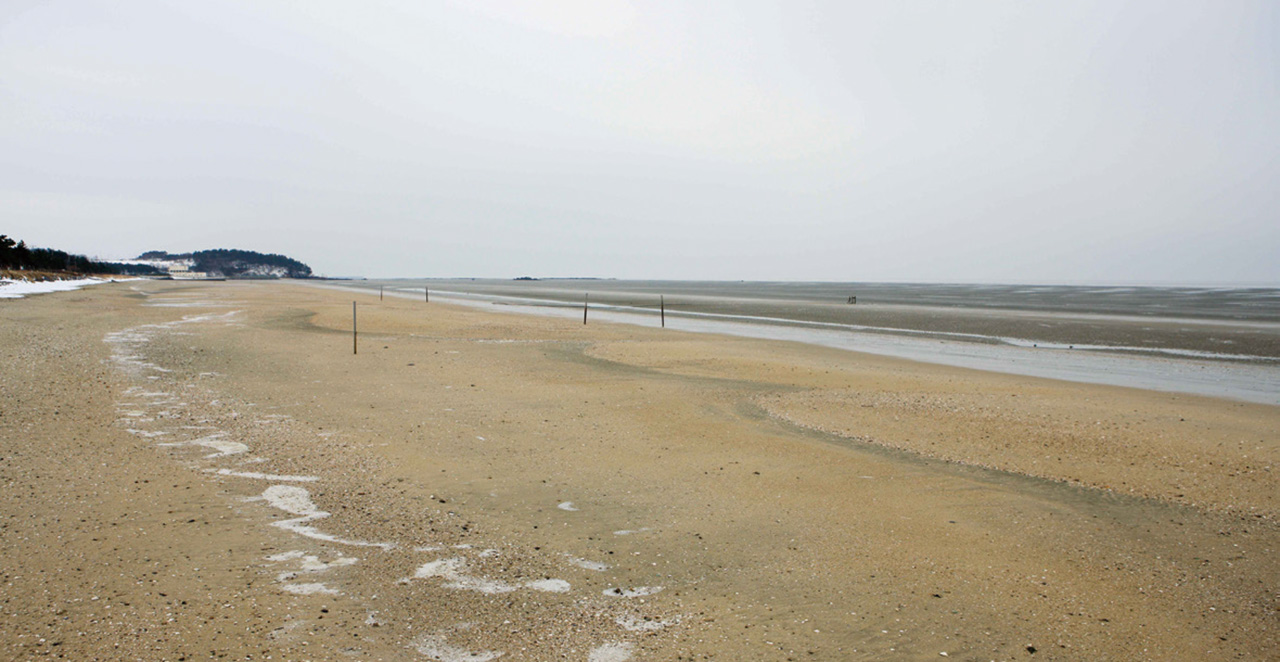길게 펼쳐진 백사장으로 유명한 곳이다. 4km 이상 펼쳐진 모래사장은 모래발이 가늘고 경사가 완만하여 여름철 많은 피서객이 방문한다. 수심 또한 0.5~1.5m로 아이들이 물놀이를 즐기기에 적당하고, 백사장 뒤로 수백 년 된소나무 숲이 장관을 이루고 있다.