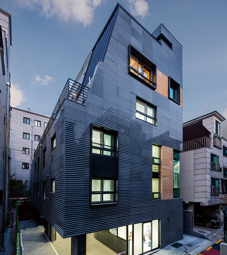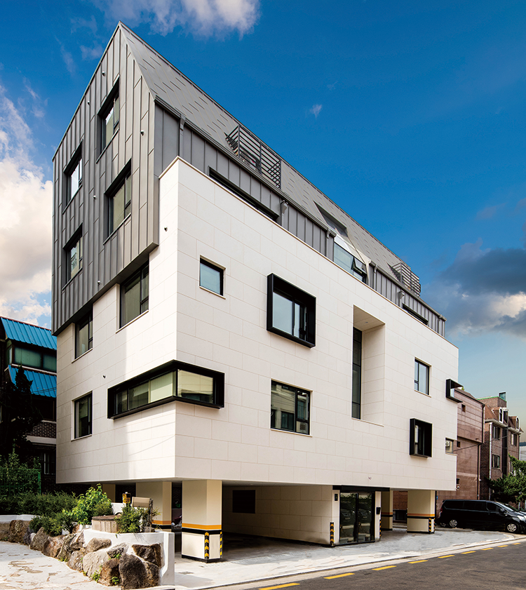 (왼쪽부터) 일조권 제한 적용을 받은 다세대주택. 청담동 피에트라, 논현동 메종스프링, 논현동 이래. 제공: 오픈스케일 건축사사무소