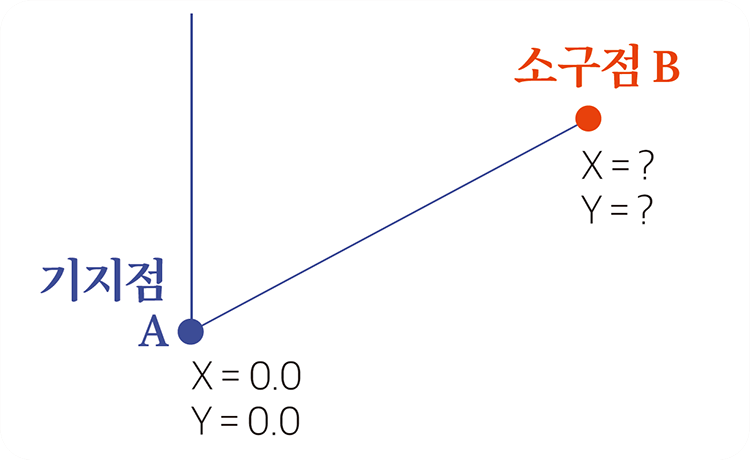 기지점을 기준으로 위치를 구하고자 하는 점