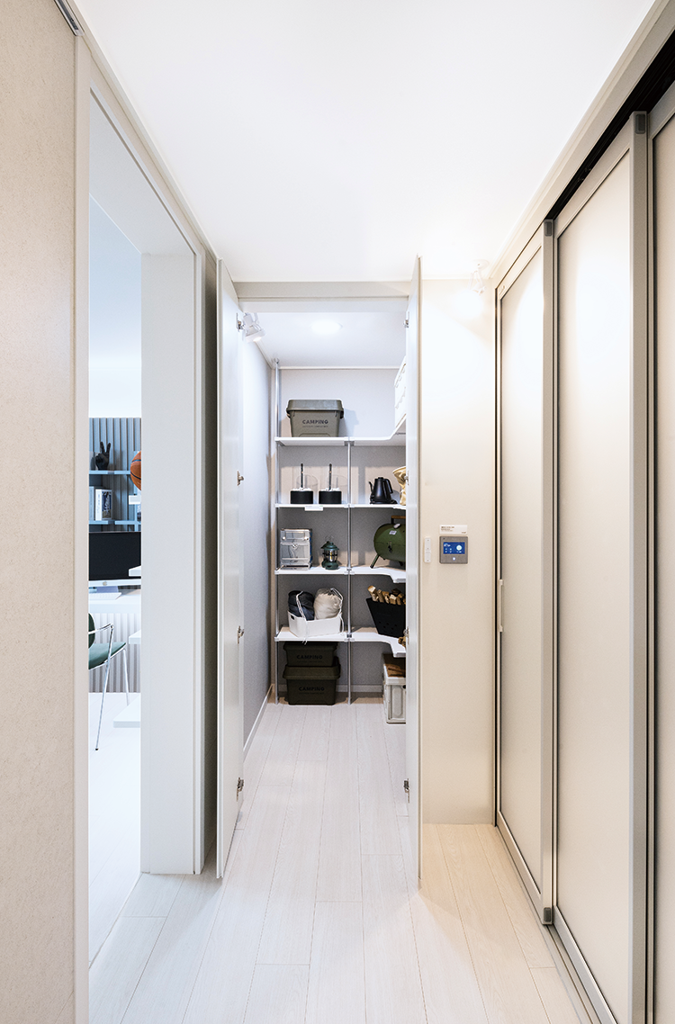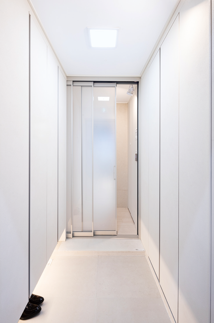 복도 팬트리 중문 옆 복도에 대용량 팬트리가 기본으로 제공된다.