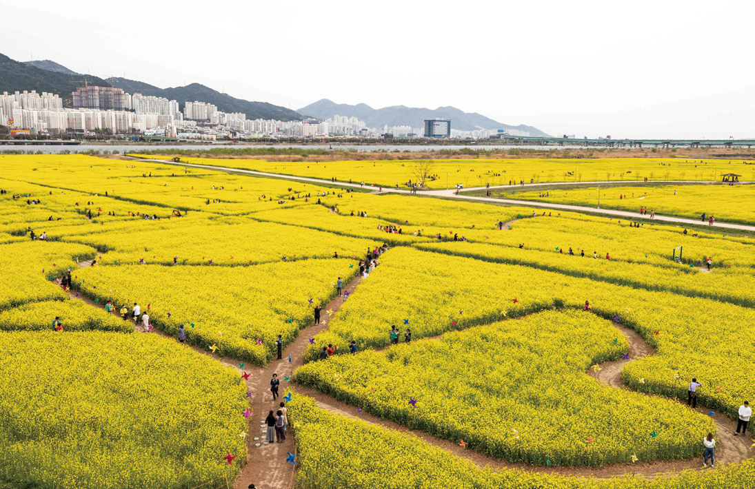 전국에서 가장 넒은 유채꽃 단지를 자랑하는 곳으로 도심과 인접해 있어 유채꽃 시즌이면 항상 인파로 붐빈다.