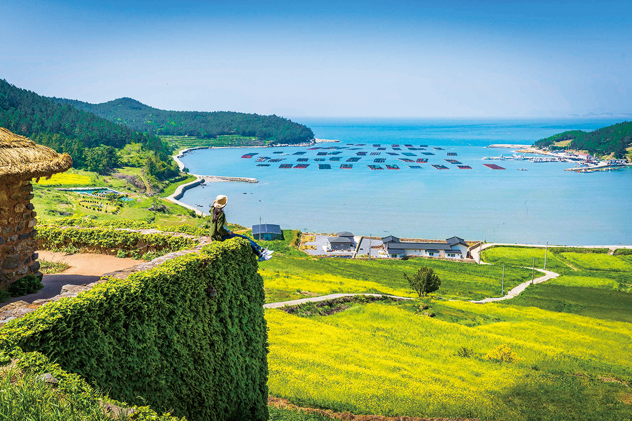 청산도항에서 당리 언덕길을 오르면 영화 ‘서편제’ 촬영지를 만날 수 있다. 이곳이 유독 유명한 이유는 유봉일가가 당리의 황톳길을 내려오며 진도아리랑을 부르는 장면이 가장 아름다운 명장면으로 손꼽히기 때문이다. 5분 30초에 걸친 롱테이크가 촬영된 구불구불한 돌담 주변으로 노란 유채꽃이 지천이다.