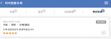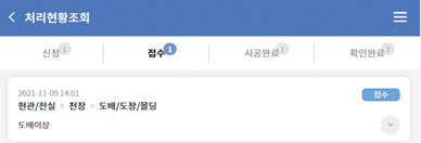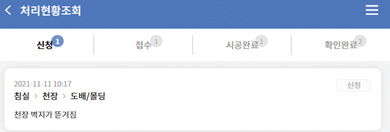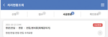 - 3) 업체에서 시공을 진행하면 진행중으로 바뀌고 완료하면 시공완료로 변환