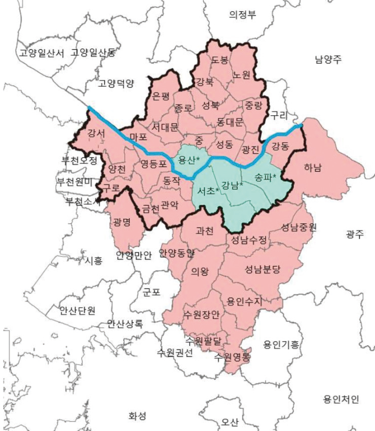 강남, 서초, 송파, 용산 : 기존 투기과열지구 및 조정대상지역 적용 자치구