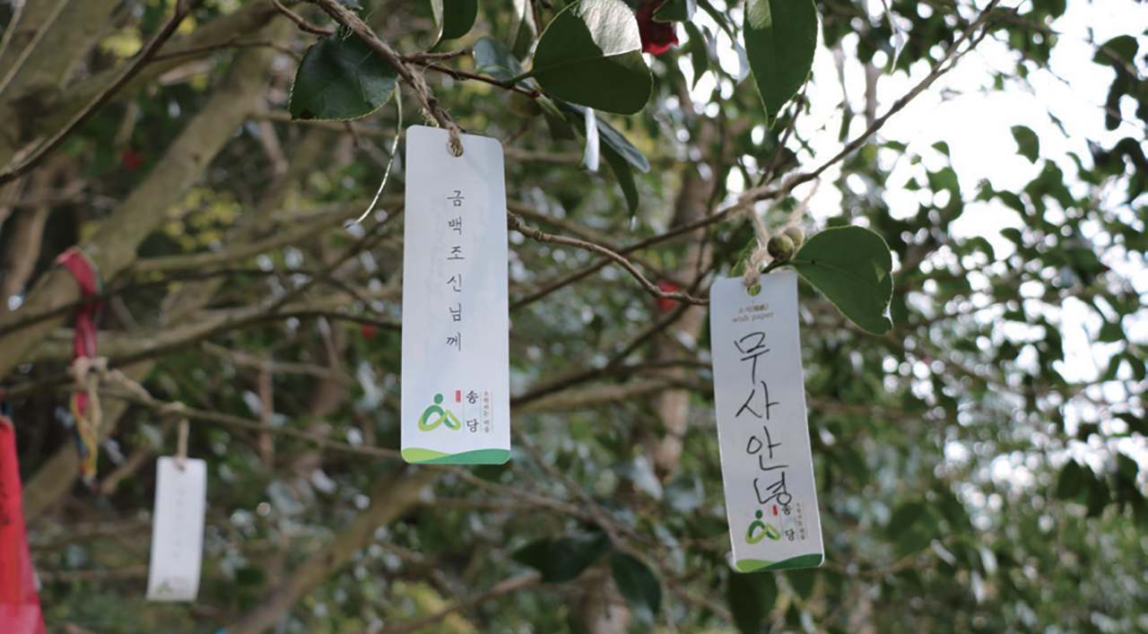 제주 송당마을 본향당에 걸린 소원글