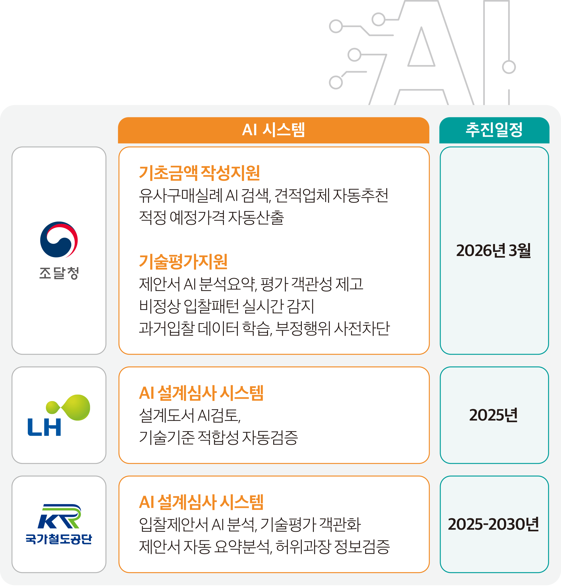 AI 3대 강국 진입을 표방한 새 정부의 정책 방향에 따라 공공발주 방식도 AI 도입이 가속화 되고 있다.